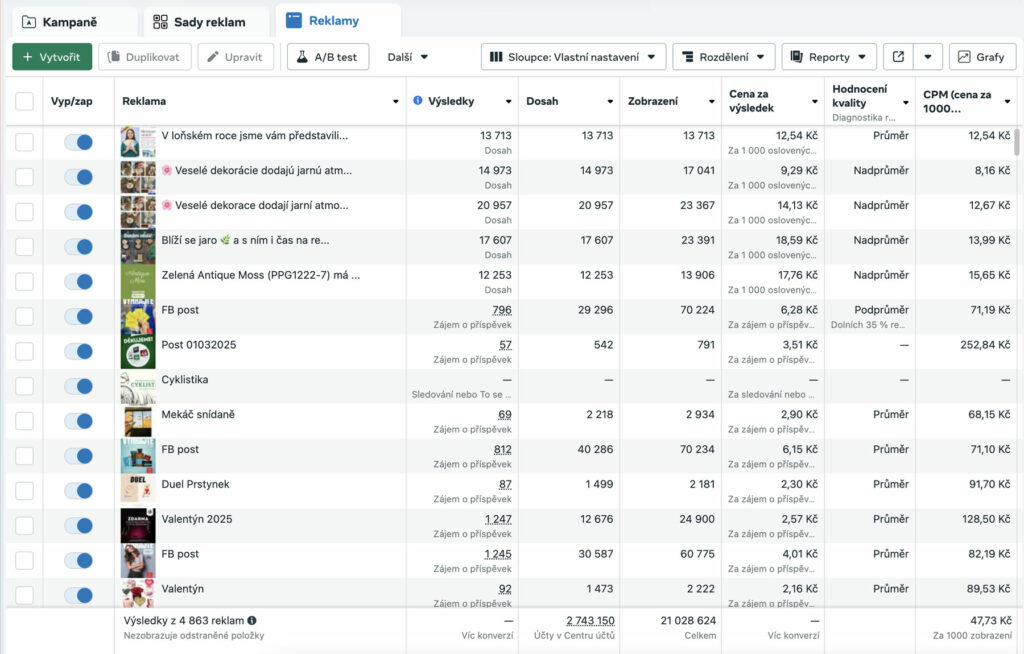Minimální reklamní rozpočet je 1 000 Kč měsíčně na profil, přičemž částka je hrazena přímo z vaší karty prostřednictvím Meta Ads. Tento rozpočet zajišťuje, že vaše firma osloví správnou cílovou skupinu a získá potřebnou viditelnost.
